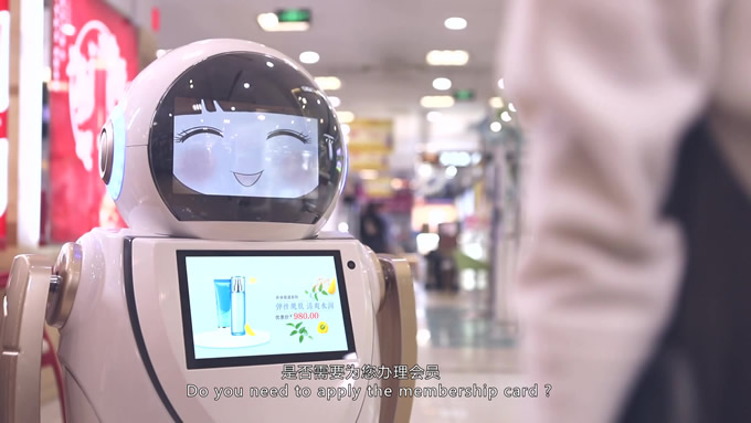會(huì)說(shuō)英文的迎賓機(jī)器人