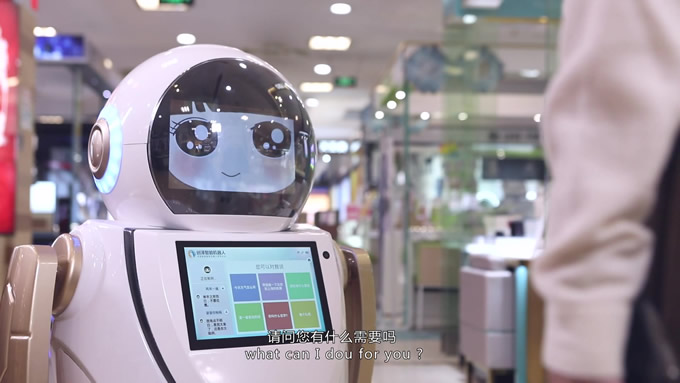 會(huì)說(shuō)英文的迎賓機(jī)器人