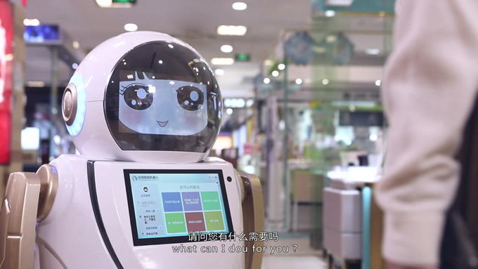 會(huì)說(shuō)英文的迎賓機(jī)器人