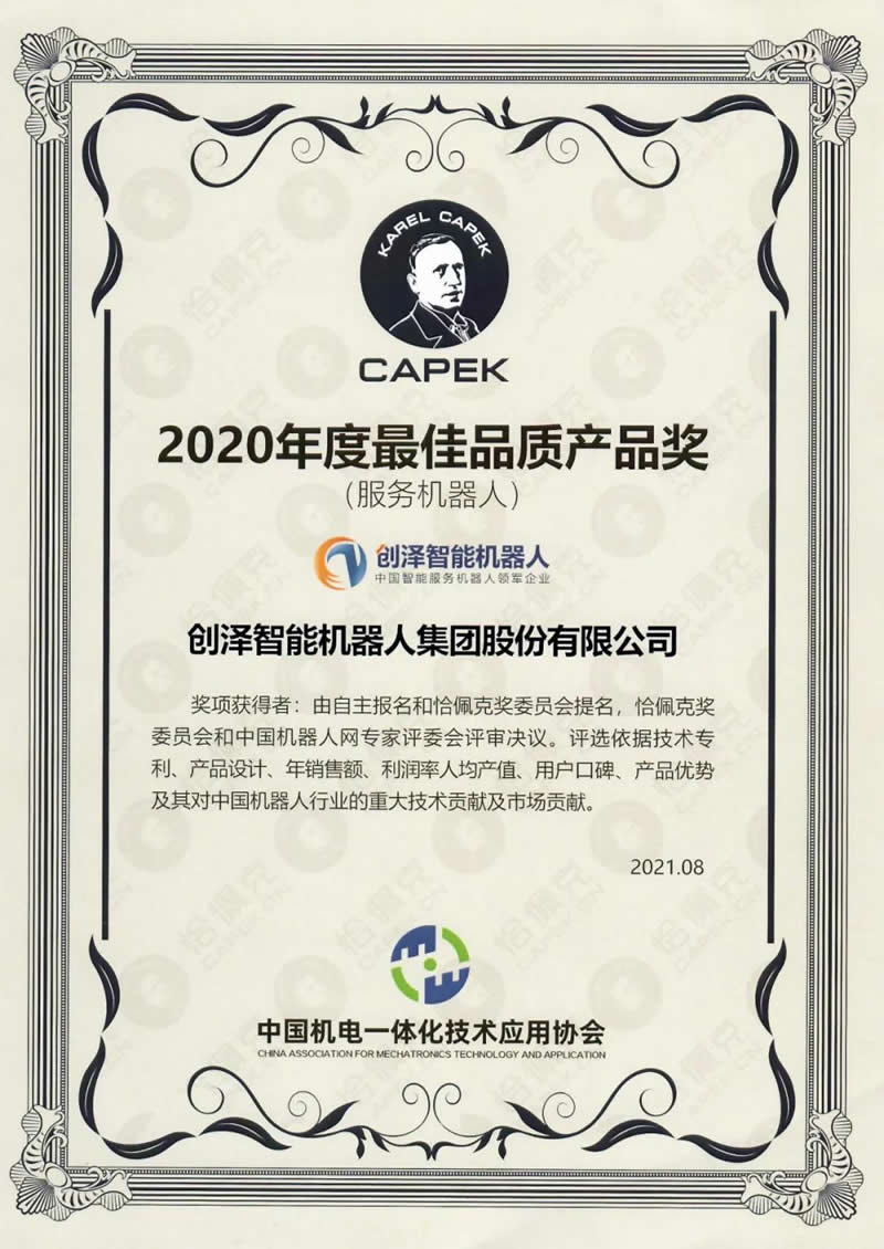 此次創(chuàng)澤集團(tuán)憑借在人工智能和機(jī)器人L域的突出表現(xiàn),成功從恰佩克獎主辦方和評委會層層篩選中脫穎而出,榮獲恰佩克“2020年度佳品質(zhì)產(chǎn)品獎”。這不僅意味著創(chuàng)澤集團(tuán)的產(chǎn)品與技術(shù)受到恰佩克評委會的肯定,同樣證明創(chuàng)澤集團(tuán)被行業(yè)內(nèi)部的認(rèn)可與肯定。