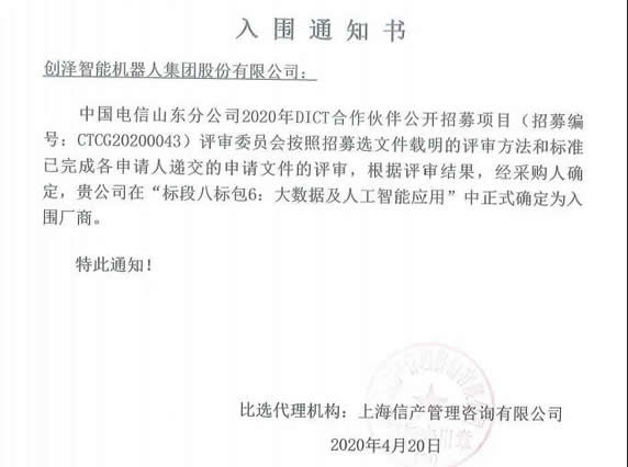 近日,中國聯(lián)通山東省分公司、中國電信山東分公司分別對外公示了2020DICT合作伙伴公開招募項(xiàng)目、2020年專業(yè)類 5G 應(yīng)用公開市場供應(yīng)商招募項(xiàng)目入圍單位名單。創(chuàng)澤集團(tuán)從眾多投標(biāo)商家中脫穎而出,接連中標(biāo)入圍。 另外,前段時間創(chuàng)澤集團(tuán)已與中國移動已經(jīng)成立了“5G+AI聯(lián)合創(chuàng)新實(shí)驗(yàn)室”,目前和中國移動的智慧銀行、智慧醫(yī)院項(xiàng)目正在有序推進(jìn)中。