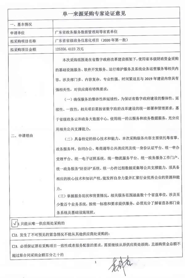 項(xiàng)目名稱:廣東省省級(jí)政務(wù)信息化項(xiàng)目(2020年D一批)單一來源采購