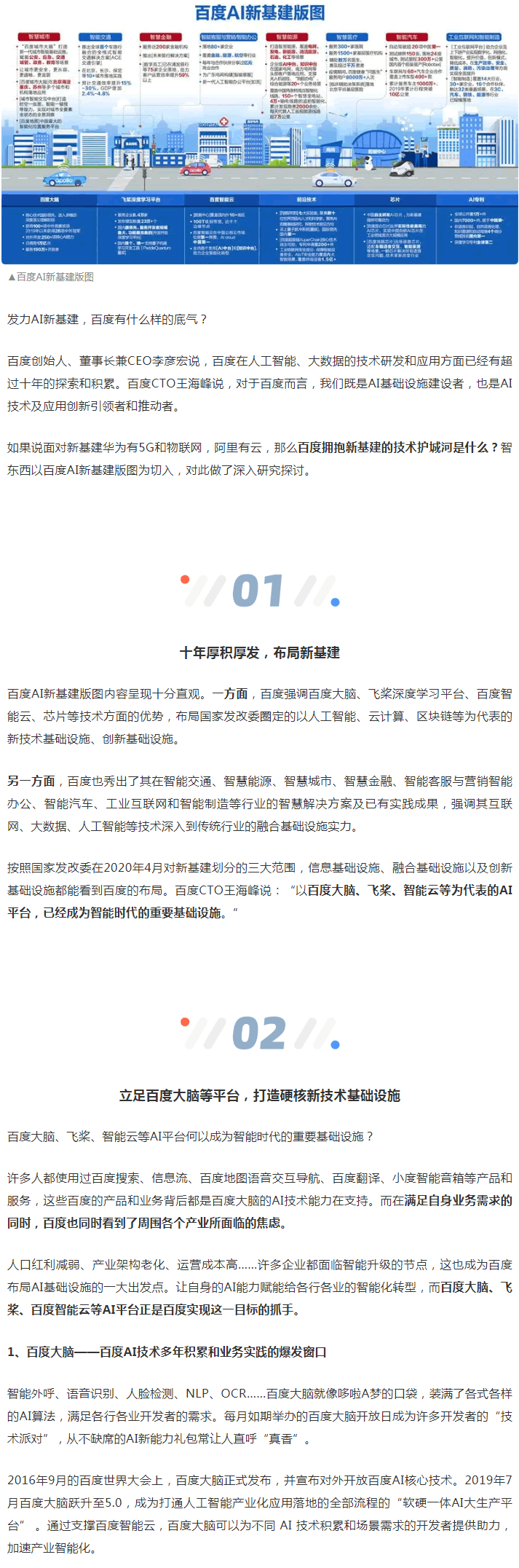 隨著2020年新基建被國家發(fā)改委明確劃分三大范圍并寫入2020政府工作報告,科技巨頭們紛紛就新基建布局投資、開展合作。百度更是亮出了“百度AI新基建版圖”。