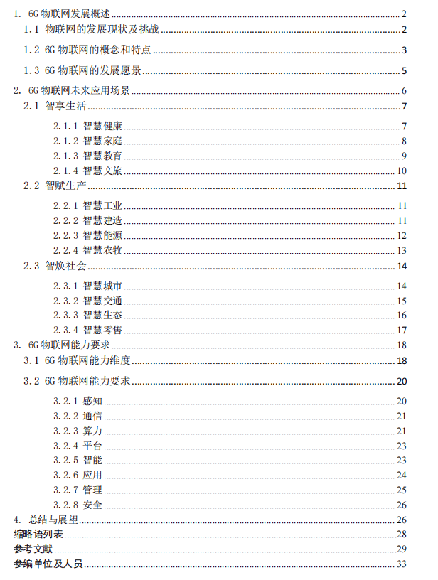 《白皮書》系統(tǒng)化的梳理了6G物聯(lián)網(wǎng)在智享生活、智賦生產(chǎn)和智煥社會三大L域的未來應(yīng)用場景,并提出在感知、通信、計算、平臺、智能、應(yīng)用、管理和安全等方面的能力需求。