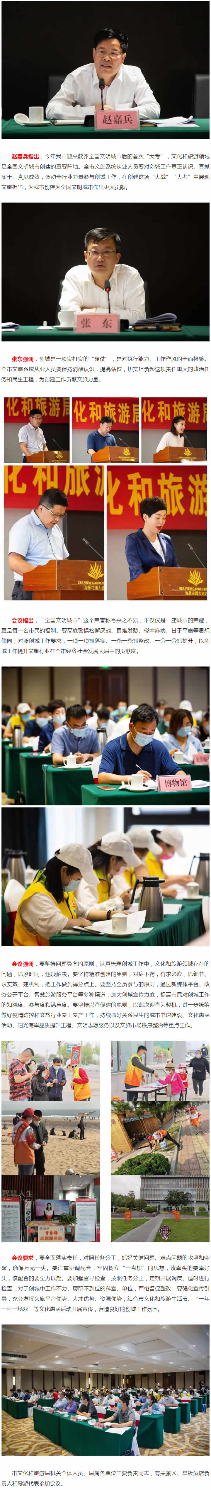 會議對市文化和旅游局2020年度創(chuàng)建全國文明城市工作進行了安排部署,圖書館、博物館、旅游景區(qū)、星級酒店和導(dǎo)游代表分別作了表態(tài)發(fā)言。