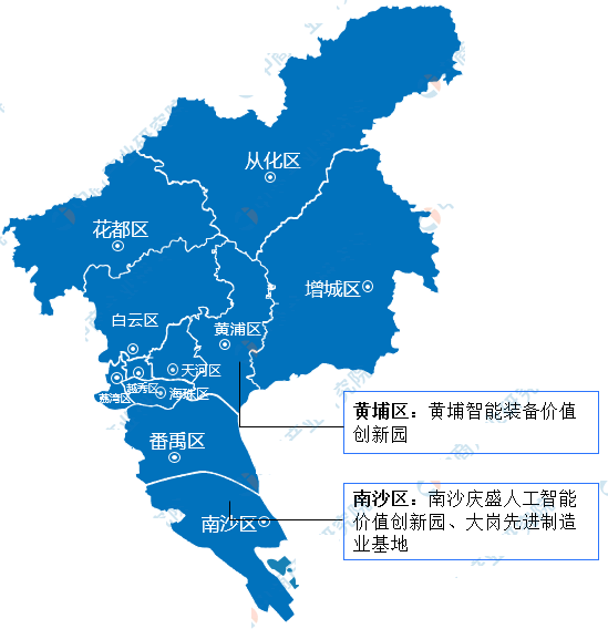 廣州市智能裝備與機器人重點平臺主要包括:黃埔智能裝備價值創(chuàng)新園、南沙慶盛人工智能價值創(chuàng)新園、大崗先進制造業(yè)基地等。