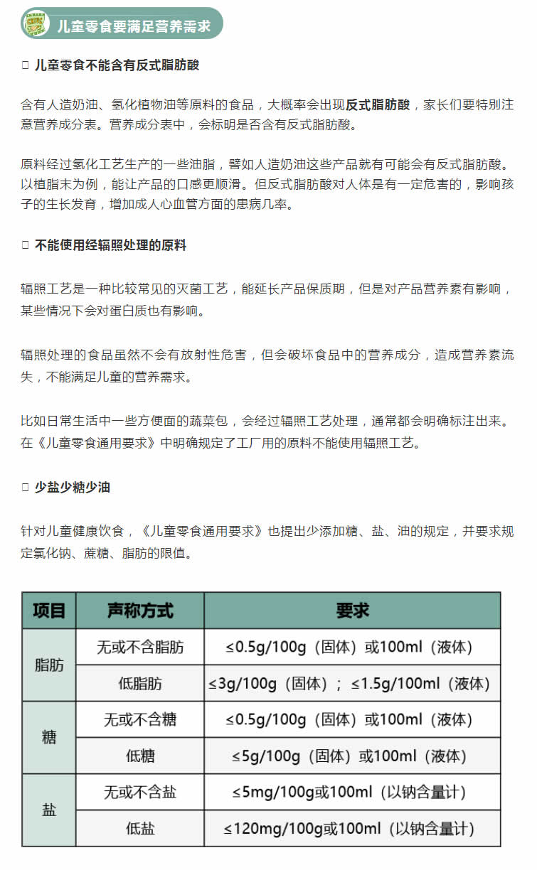 此外,這次的新標(biāo)準(zhǔn)首次提出“兒童零食”的定義,區(qū)別于普通零食,兒童零食指適合3-12歲兒童食用的零食。