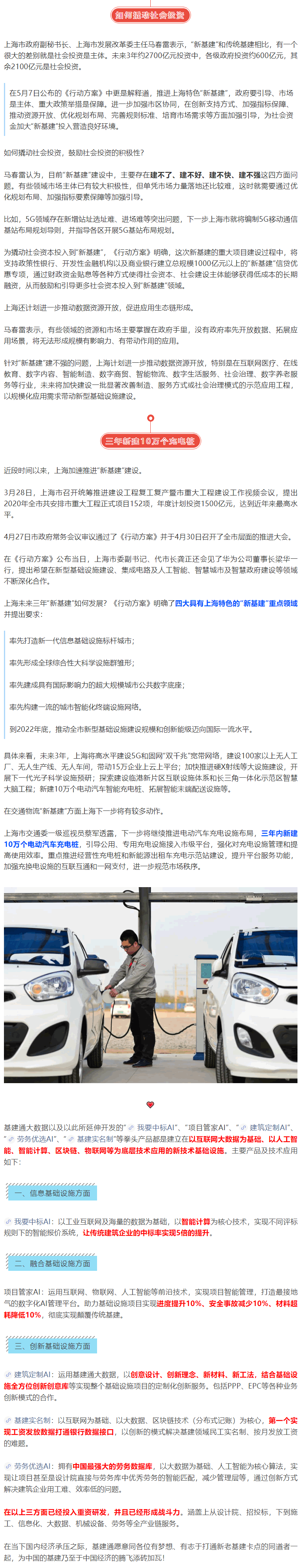 5月7日,上海市公開(kāi)《上海市推進(jìn)新型基礎(chǔ)設(shè)施建設(shè)行動(dòng)方案(2020-2022年)》(下簡(jiǎn)稱(chēng)《行動(dòng)方案》),要求三年內(nèi)推動(dòng)上海新型基礎(chǔ)設(shè)施建設(shè)規(guī)模和創(chuàng)新能級(jí)邁向國(guó)際出色水平。其中,強(qiáng)調(diào)“社會(huì)資金加大‘新基建’投入”成為上海版“新基建”方案的重點(diǎn)之一。