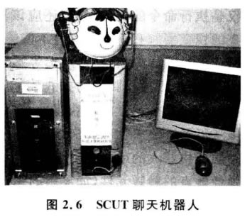 近年來,SCUT “智能計算機”科研團(tuán)隊也對 聊天機器人展開了研究,如圖2.6所示。他們開 發(fā)的SCUT 聊天機器人包括攝像頭及驅(qū)動模塊、 語音拾取模塊、語音識別模塊、知識查詢模塊、語 音生成模塊;攝像頭捕獲人臉圖像,語音信號經(jīng) 由語音拾取模塊和語音識別模塊后識別出語義,聊天機器人根據(jù)用戶的語音來了解用戶的需求,
