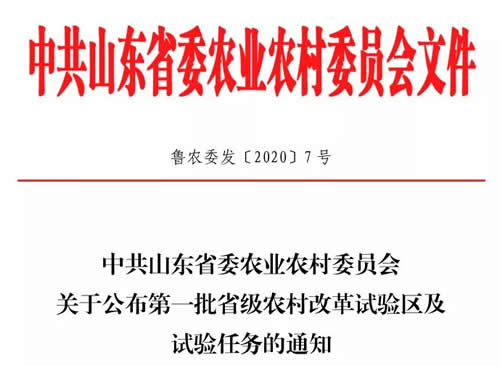 近日,省委農(nóng)業(yè)農(nóng)村委員會(huì)印發(fā)《關(guān)于公布D一批省級(jí)農(nóng)村改革試驗(yàn)區(qū)及試驗(yàn)任務(wù)的通知》(魯農(nóng)委發(fā)〔2020〕7號(hào))
