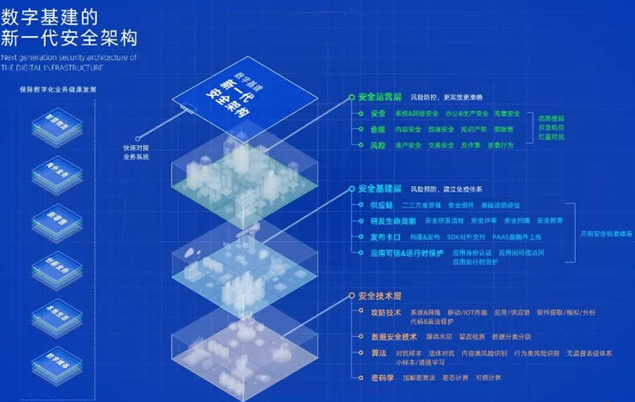 在“安全基建”概念中,新架構(gòu)整合阿里安全能力和運(yùn)營(yíng)經(jīng)驗(yàn),形成一套即插即用的標(biāo)準(zhǔn)化安全架構(gòu),為各類 App 和網(wǎng)站等數(shù)字經(jīng)濟(jì)實(shí)體的搭建過程建立標(biāo)準(zhǔn)化流程,幫助構(gòu)建數(shù)字化進(jìn)程中的安全基礎(chǔ)設(shè)施。&