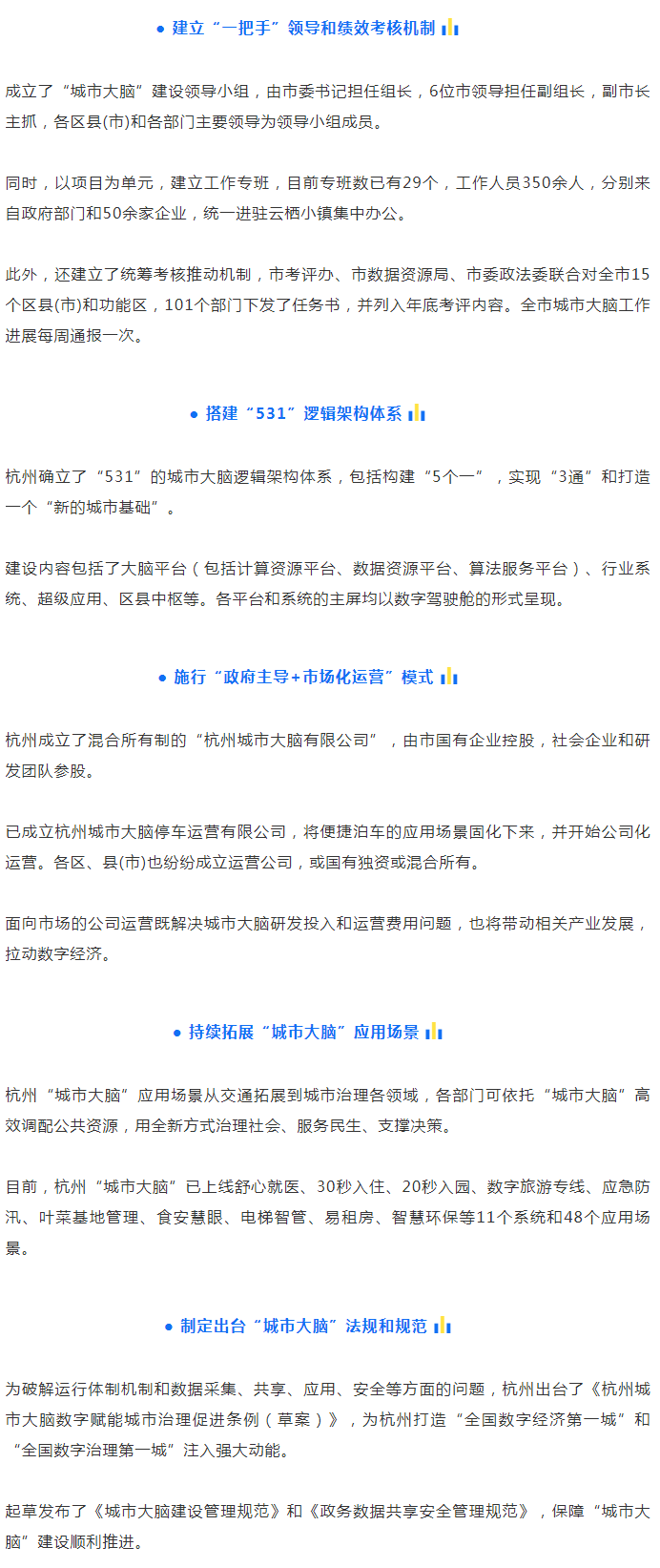 治堵取得階段性勝利后,2018年9月和12月,杭州市推出了“城市大腦升級”版,提出構(gòu)建 “以大腦中樞平臺為核心,縱向到區(qū)縣(市),橫向到各部門”的“城市大腦”,建立了市級、部門系統(tǒng)、區(qū)縣平臺和街道平臺四類數(shù)字駕駛艙,并聚焦城市治理的“痛點”“堵點”和群眾反映強(qiáng)烈的“熱點”“難點”問題,推出了11大系統(tǒng)和48個應(yīng)用場景,“城市大腦”在城市運(yùn)行的生命體征感知、公共資源配置、宏觀決策指揮、事件預(yù)測預(yù)警、“城市病”治理等方面發(fā)揮了重要作用。