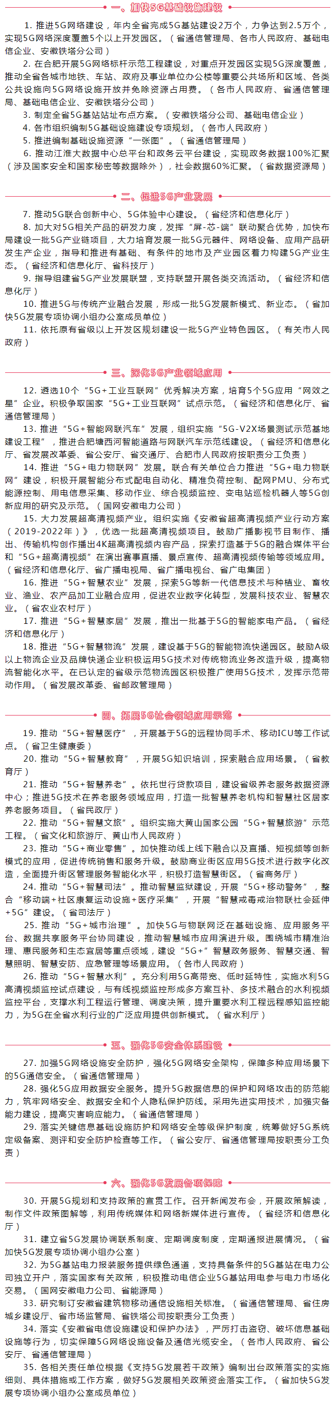現(xiàn)將《2020年安徽省5G發(fā)展工作要點》印發(fā)你們,請結(jié)合職責(zé)分工,抓好落實。