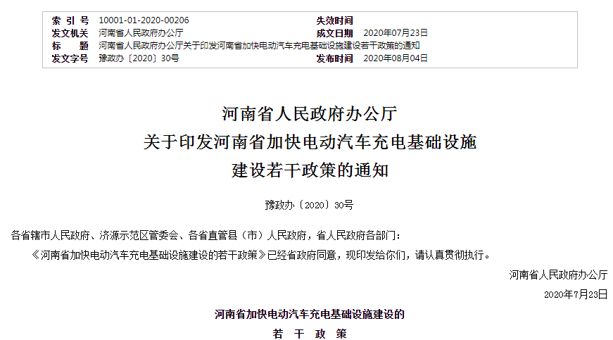近日,河南省人民政府辦公廳印發(fā)了《河南省加快電動(dòng)汽車充電基礎(chǔ)設(shè)施建設(shè)的若干政策》,明確提出到2025年,全省累計(jì)建成集中式充換電站2000座以上,各類充電樁15萬個(gè)以上。