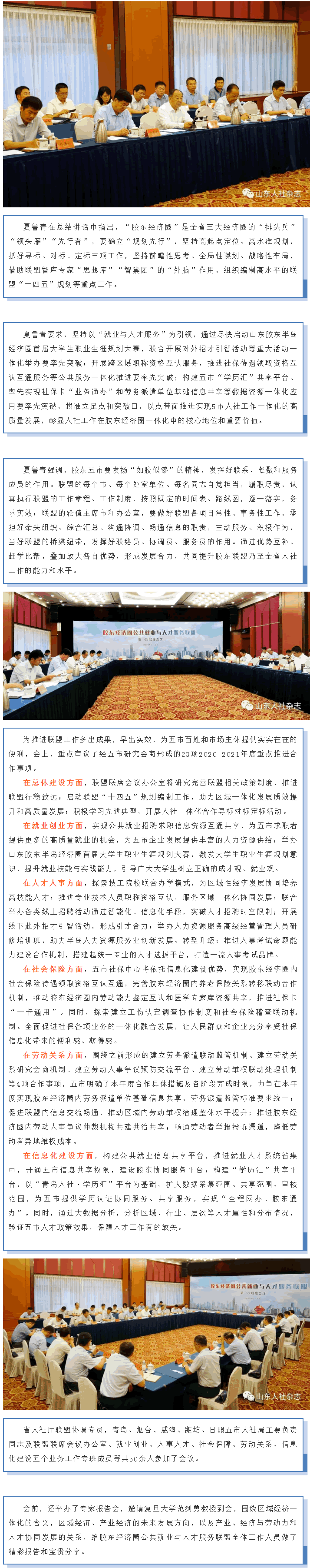 青島市人民政府秘書長孫繼出席會(huì)議并致辭。聯(lián)盟聯(lián)席會(huì)議主席,省人力資源社會(huì)保障廳黨組副書記、副廳長、一級巡視員夏魯青作總結(jié)講話。聯(lián)盟D一任輪值執(zhí)行主席、秘書長,青島市委組織部副部長、市人力資源和社會(huì)保障局黨組書記、局長胡義瑛主持會(huì)議。