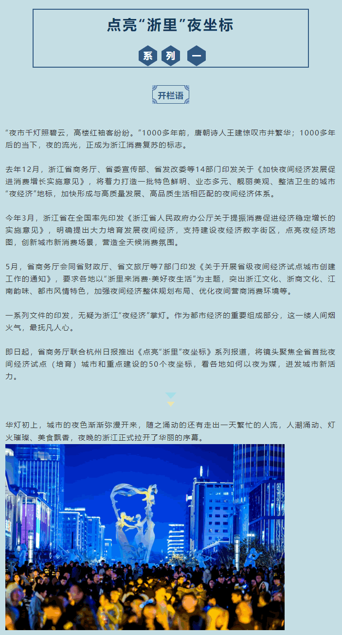 大力發(fā)展夜間經(jīng)濟新業(yè)態(tài)新模式,不斷完善夜間公共服務(wù),優(yōu)化夜間經(jīng)濟營商環(huán)境,切實提升夜間經(jīng)濟活力,積J促進城市消費升級,打響不夜商城品牌,打造國內(nèi)知名夜間經(jīng)濟城市