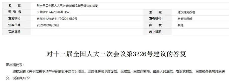 此外,答復(fù)就“關(guān)于不動產(chǎn)共有登記”等問題也做了明確回復(fù)。答復(fù)指出,不動產(chǎn)登記機構(gòu)以少數(shù)份額共有人不配合而不予辦理登記的問題,屬于執(zhí)行層面的問題,將加強監(jiān)督指導(dǎo),嚴(yán)格落實法律規(guī)定,切實維護不動產(chǎn)權(quán)利人合法權(quán)益。