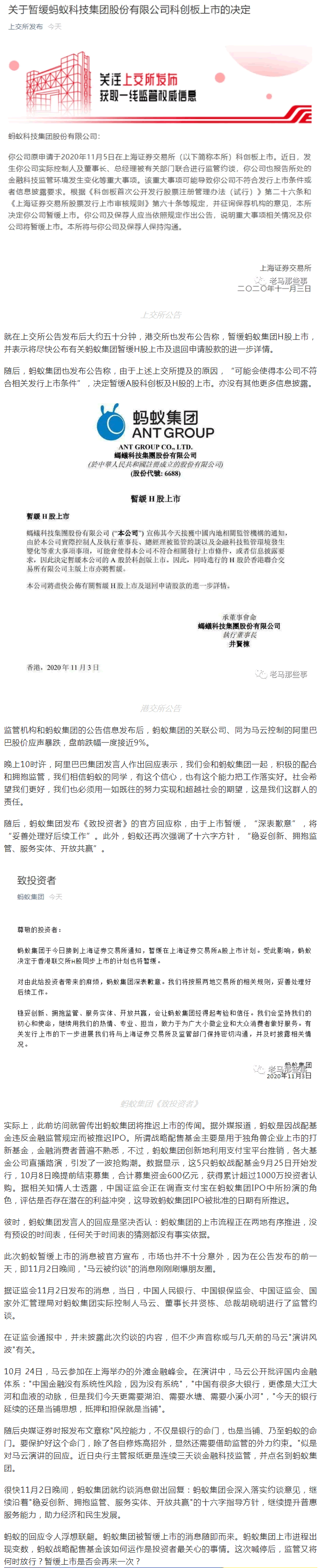 螞蟻集團(688688.SH、6688.HK)在滬市科創(chuàng)板IPO計劃突然暫緩,同時進行的H股于香港聯(lián)合交易所有限公司主版上市亦將暫緩