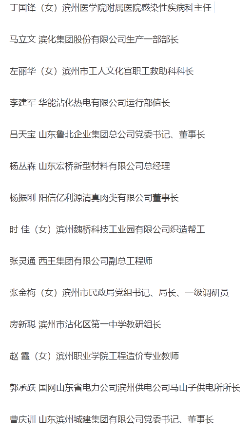 2021年濱州市五一勞動獎章獲得者名單