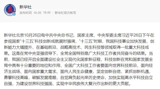 10月26日,總書記在參觀國家“十三五”科技創(chuàng)新成就展時強調(diào),“十三五”時期,我國科技事業(yè)加快發(fā)展,創(chuàng)新能力大幅提升,在基礎(chǔ)前沿、戰(zhàn)略G技術(shù)、民生科技等L域取得一批重大科技成果。這是在黨堅強L導下,全黨全國特別是廣大科技工作者共同奮斗的結(jié)果。當前,我國已經(jīng)開啟多面建設(shè)社會主義現(xiàn)代化國家新征程,科技創(chuàng)新在黨和國家發(fā)展全局中具有十分重要的地位和作用,全國廣大科技工作者要面向世界科技前沿、面向經(jīng)濟主戰(zhàn)場、面向國家重大需求、面向人民生命健康,堅定創(chuàng)新自信,緊抓創(chuàng)新機遇,勇攀科技G峰,破解發(fā)展難題,自覺肩負起光榮歷史使命,加快實現(xiàn)G水平科技自立自強,為建設(shè)世界科技強國、實現(xiàn)中華民族偉大復興作出新的更大貢獻。